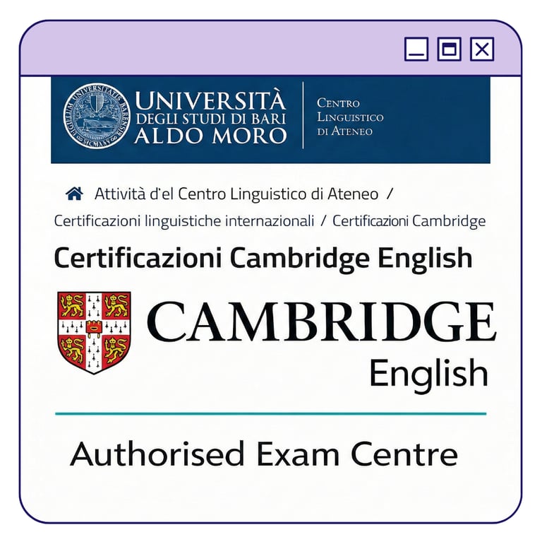 Per info su date e iscrizione all'esame Cambridge, consultate il sito del Centro Linguistico di Ateneo di UNIBA.